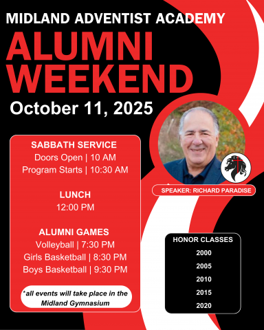 This year the annual Alumni Weekend will be on October 11th, 2025. It’s a wonderful opportunity to reconnect with old friends, relive cherished memories, and see how Midland Adventist Academy continues to grow and thrive.
